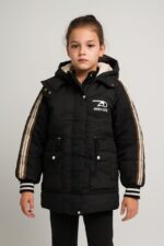 کاپشن دخترانه دو جیب پاپیون به همراه شال گردن کد 1003