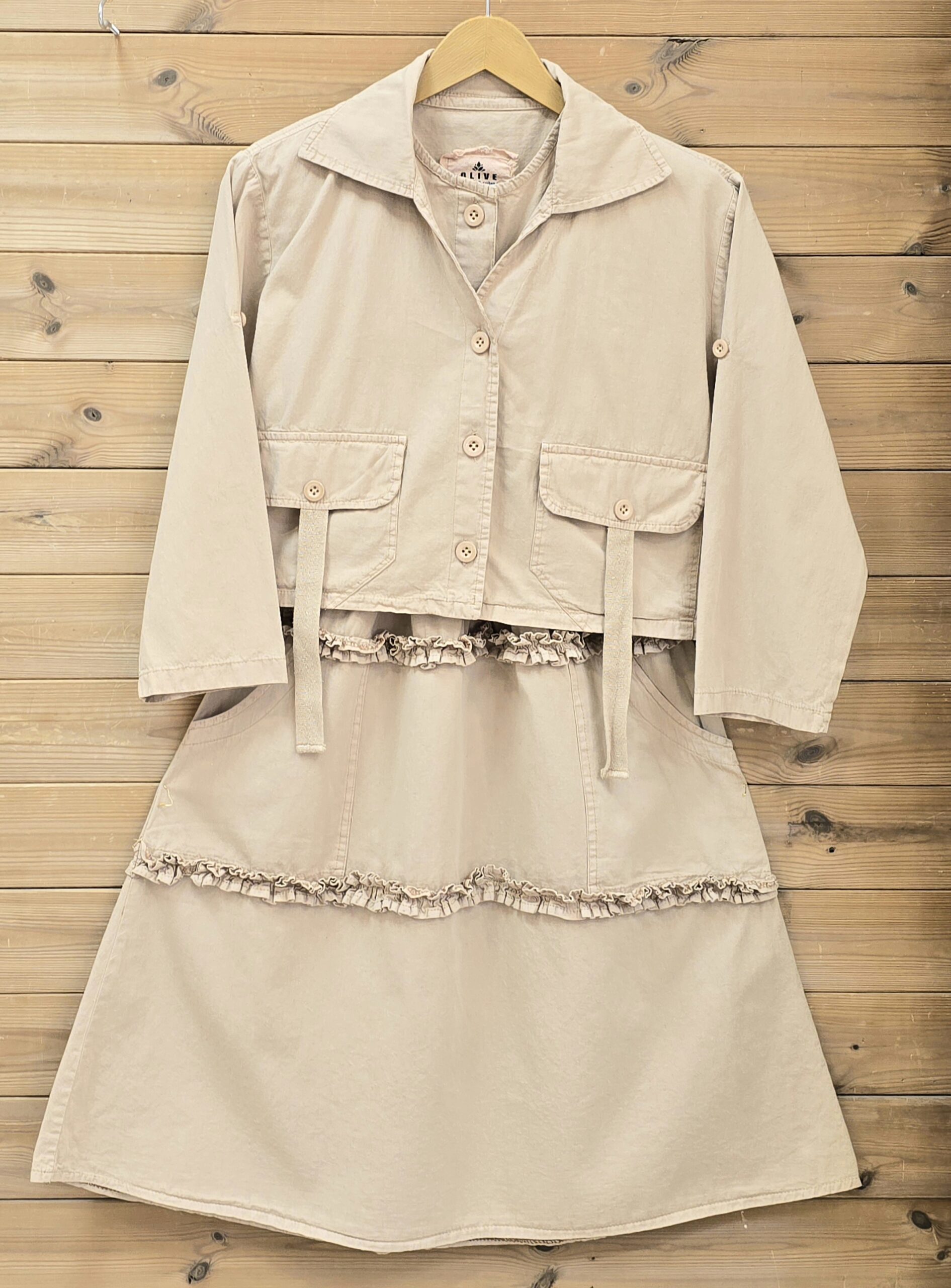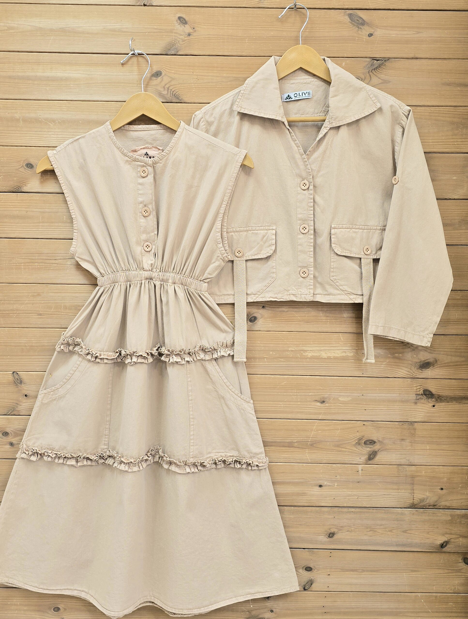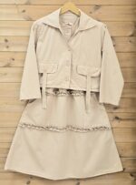 سارافون کتان بلند با چین کمر همراه کت رویی